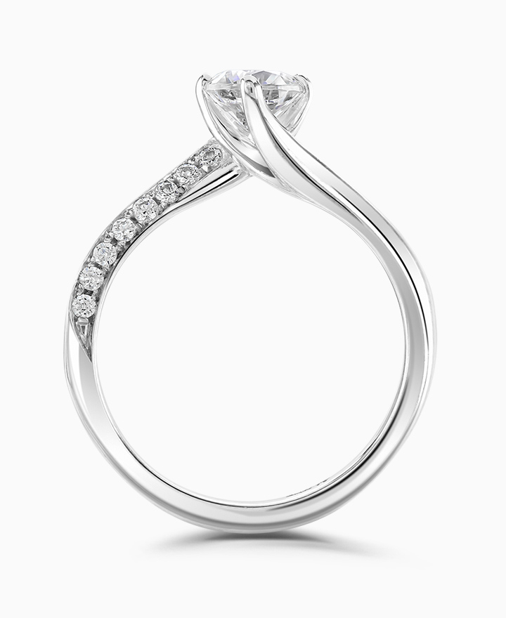 Handcrafted by Brown & Newirth; inspired by nature, organic lines twist up to embrace a 0.50ct round brilliant cut diamond, presented here on a diamond set band totalling 0.60ct. Part of the Entwined Collection.