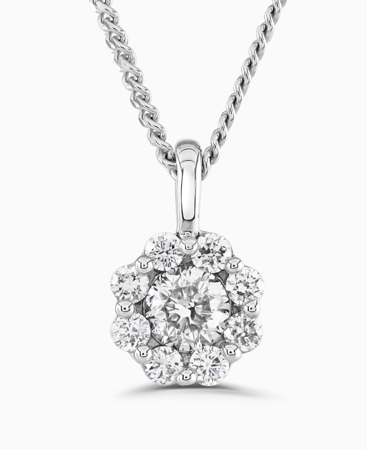 Handcrafted by Brown & Newirth; our open set round brilliant diamond cluster stud pendant, supplied on a 16' to 18' adjustable trace chain. Total 0.20ct. This is part of our in stock range, order today for quick delivery.
