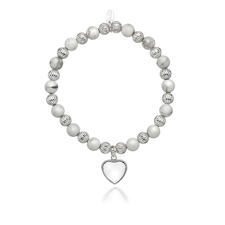 Sterling silver beads and marble effect jasper beads on a stretchy silicone thread.