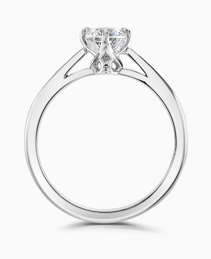 Handcrafted by Brown & Newirth; inspired by nature, organic lines twist up to embrace a round brilliant cut diamond, presented here on a classic court band. 1.00ct. Part of the Entwined Collection.