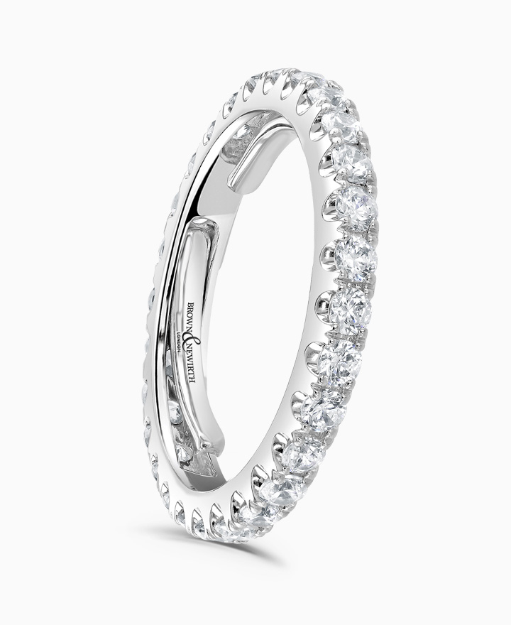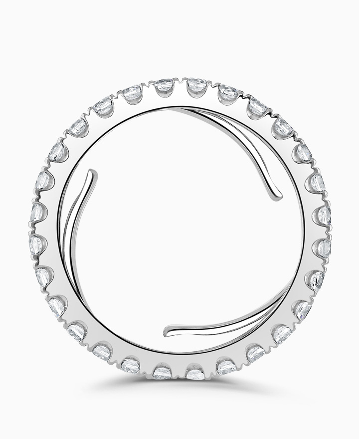 Handcrafted by Brown & Newirth, 1.5ct of round brilliant diamonds adorn the full hoop of this technical marvel. Featuring three ergonomic spring arms neatly tucked away through its lining, the ring adapts with changes to your finger up to 9 sizes