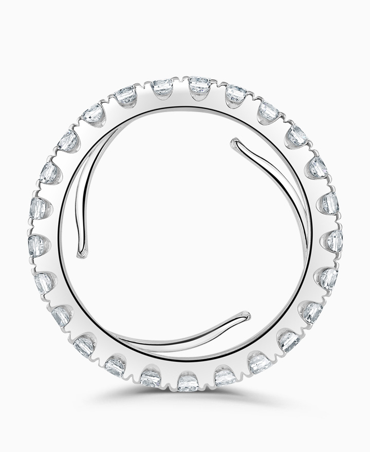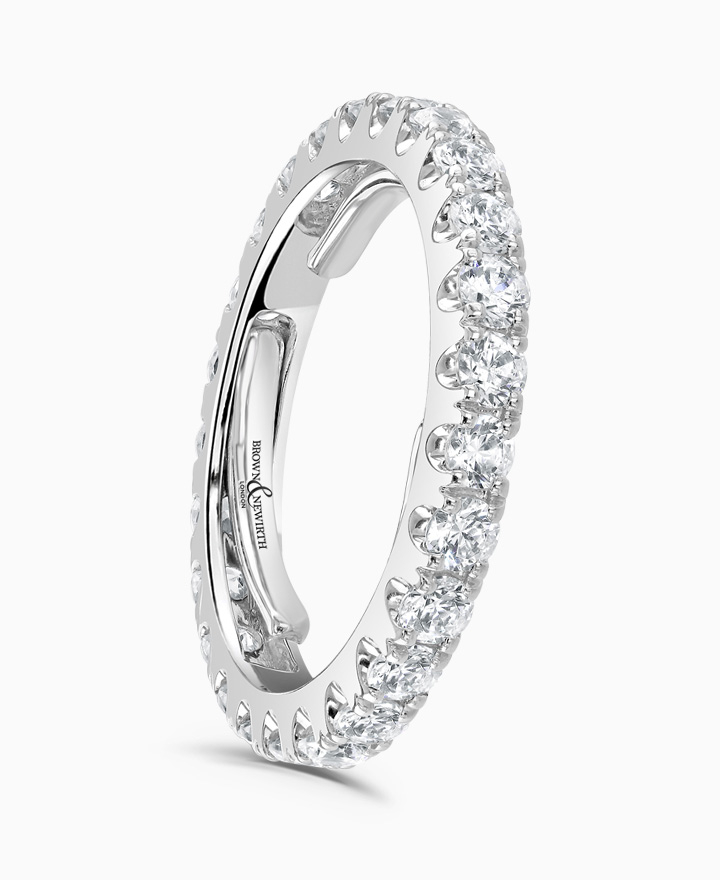 Handcrafted by Brown & Newirth, 2.00ct of round brilliant diamonds adorn the full hoop of this technical marvel. Featuring three ergonomic spring arms neatly tucked away through its lining, the ring adapts with changes to your finger up to 9 sizes
