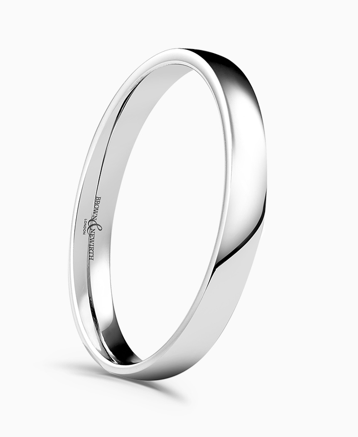 Handcrafted by Brown & Newirth; our low-domed modern court profile features a softened comfort fit lining, presented in a light gauge.
