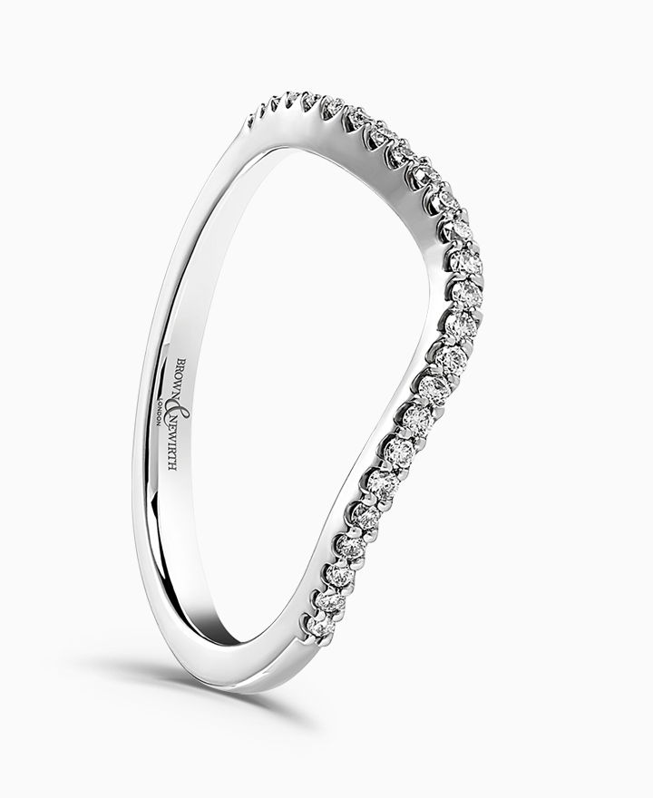 Handcrafted by Brown & Newirth; round brilliant cut diamonds flow through a curved top edge adorning of this classic court band. Part of the Icons Collection. Total carat weight 0.16ct