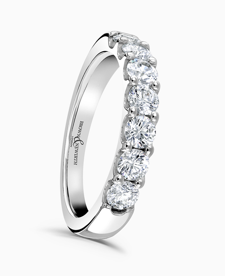 Handcrafted by Brown & Newirth; round brilliant cut diamonds adorn 40% of this classic court band. Total carat weight 1.3ct