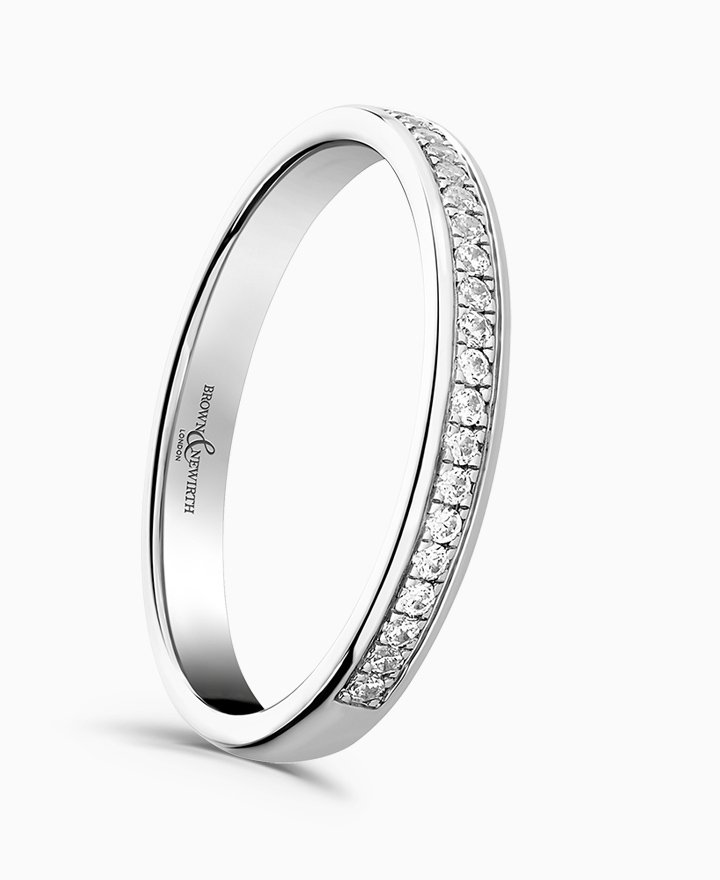 Handcrafted by Brown & Newirth; round brilliant cut diamonds adorn 40% of this classic court band. Total carat weight 0.10ct