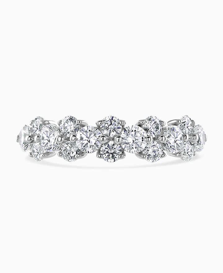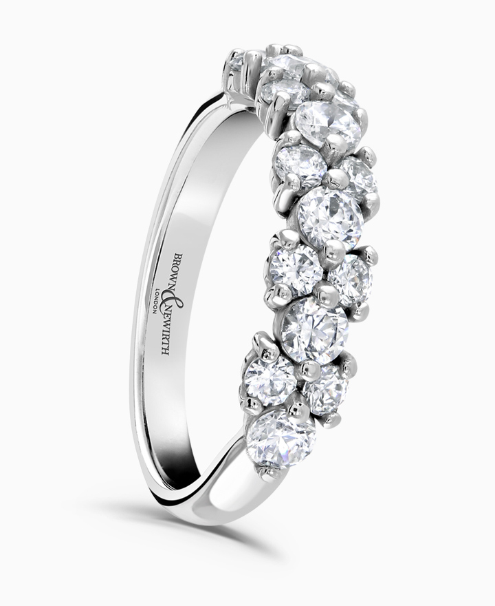 Handcrafted by Brown & Newirth; hopscotch set round brilliant cut diamonds adorn 40% of this classic court band. Total carat weight 1.10ct