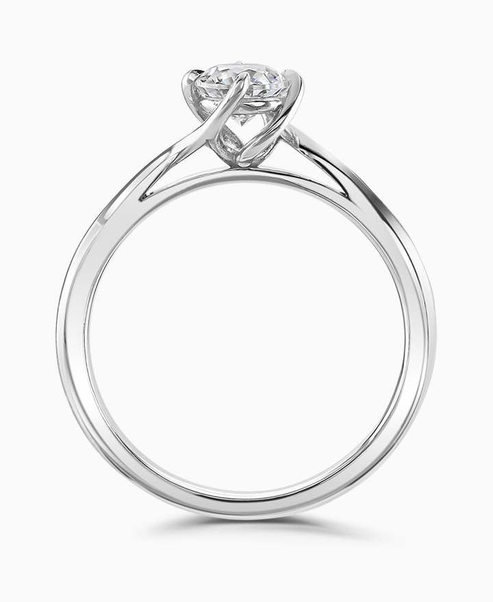 Handcrafted by Brown & Newirth; inspired by nature, organic lines twist up to embrace a round brilliant cut diamond, presented here on a classic court band. 1.00ct. Part of the Entwined Collection.