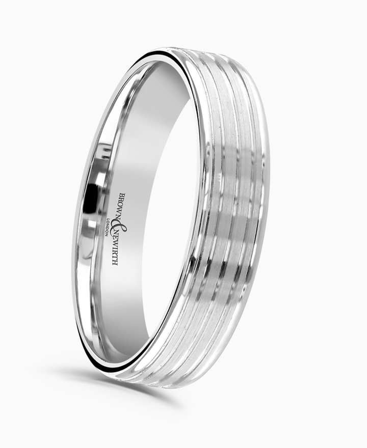 Handcrafted by Brown & Newirth; our flat top profile in brushed finish, v-cut detailing and dropped rolled edges, presented in a light gauge. Part of the Icon Collection