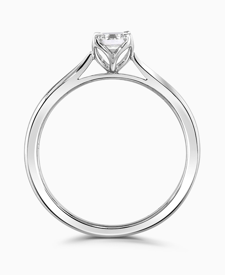 Handcrafted by Brown & Newirth; our signature 'bloom' floral detailing for a cushion cut diamond, presented here on a classic court band. 0.70ct. From our Bloom Collection. Part of our in stock range, order today for quick delivery.