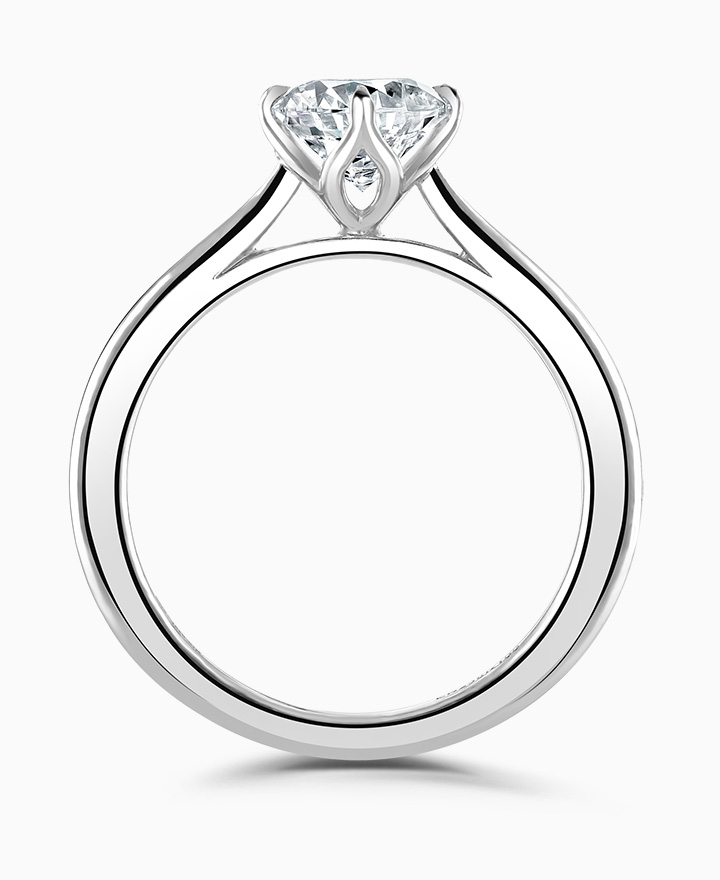 Handcrafted by Brown & Newirth; our signature 'bloom' floral detailing for a round brilliant cut G Vs diamond, presented here on a classic court band. Part of the Bloom Collection. 1.00ct