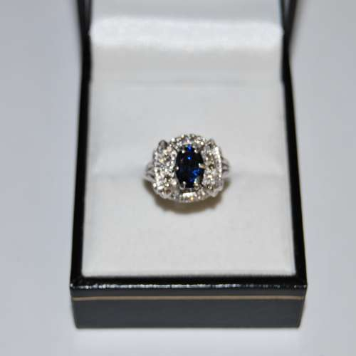 Vintage Platinum Sapphire & Diamond Cluster Ring