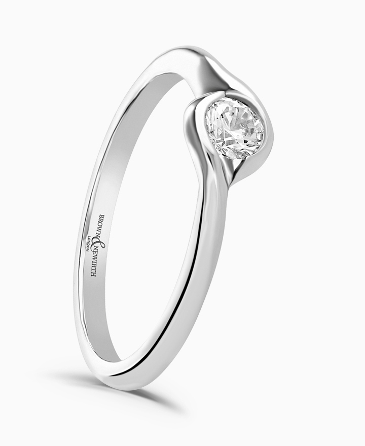 Handcrafted by Brown & Newirth; organic lines form from the shoulders to hug the round brilliant cut G Vs diamond, presented here on a classic court band. 0.50ct