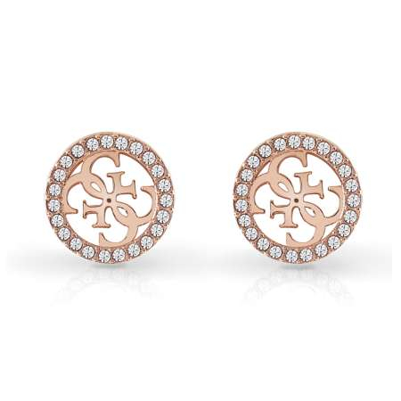 These Rose Gold GUESS stud earrings are crystal framed and feature a 4-G logo design in the centre.