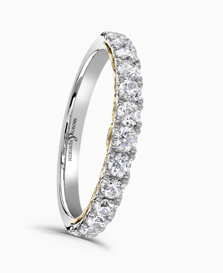 Handcrafted by Brown & Newirth; round brilliant diamonds, claw set with lace detailing adorn 50% of this classic design. Total carat weight 0.34ct. Part of the Lace Collection