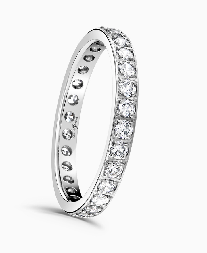Handcrafted by Brown & Newirth; round brilliant cut diamonds adorn the full hoop of this classic court band. Total carat weight 0.75ct