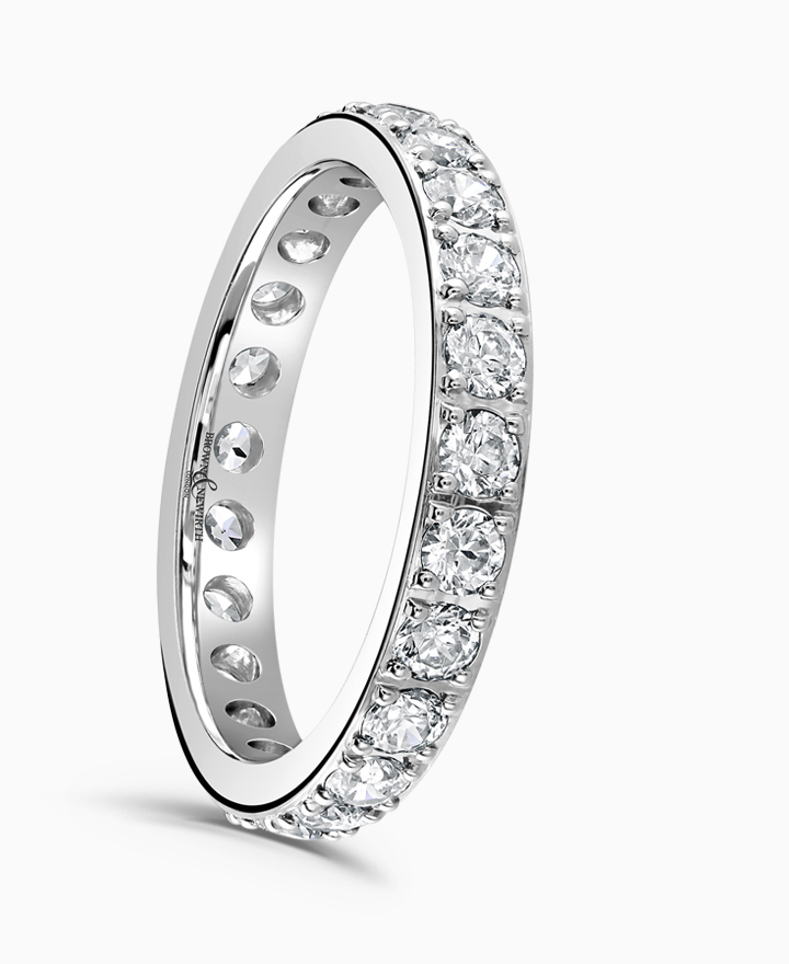 Handcrafted by Brown & Newirth; round brilliant cut diamonds adorn the full hoop of this classic court band. Total carat weight 1.5ct