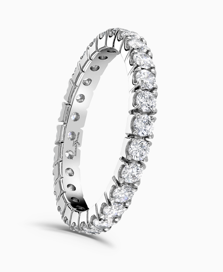 Handcrafted by Brown & Newirth; open set round brilliant cut diamonds adorn this full hoop band. Total carat weight 0.60ct